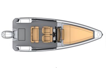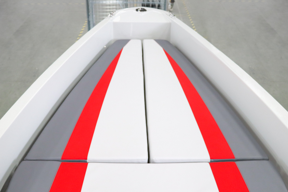 Kojelautaan saa lisävarusteena jopa kaksi 9-tuumaista monitoiminäyttöä (2 960 €), ja ohjaamon katteeksi muodikkaan t-top-katoksen (2 300 €). Myös keulakannen aurinkopatja (550 €) ja kuvissa silmiin osuvat laitojen ikkunat (540 €) ovat lisävarusteita.