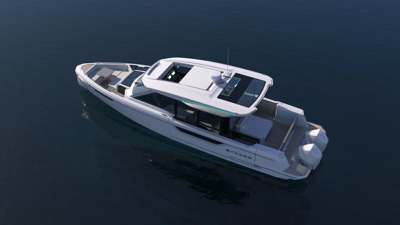 Täysleveässä tuulilasissa on ovi ja läpikulku paapuurin laidalla. Saxdoreissa ei tarvitse kiipeillä kansilla. Keulassa on kunnollinen sohvaryhmä ja pöytä, ei pelkästään makoilutasoa. Laitaterassit ovat peräti nelisen metriä pitkät ja jo vakiona sähkötoimiset. Moottorivaihtoehdot kattavat Mercuryn 300-, 350- ja 400-hevosvoimaiset V8- ja V10 Veradot pariasennuksena.