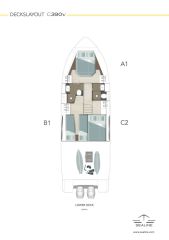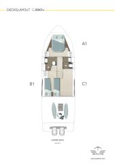 Tilaratkaisultaan ja varustelultaan C390v vastaa täysin Totalveneessä testattua sisäperädieseleillä varustettua kantamallia. Sen testiraporttiin pääsee klikkaamalla tästä.