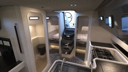 Shogun 43 on suunniteltu pienelle miehistölle: erityisesti kahden hengen kisamiehistölle ja perhekunnalle matkapurjehduskäytöön. Sisätilat tarjoavat normaalit mukavuudet jopa kuudelle hengelle. Viimeistely on tehty kuvista päätellen tarkoituksenmukaiseksi enemmän kuin huokumaan luksusta.