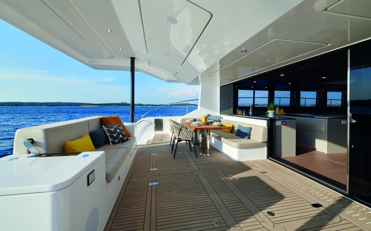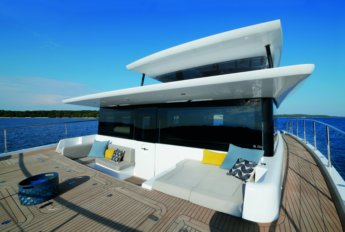 Silent Yachtsin uusi Silent 62 3-Deck Open on päivitetty versio aiemmasta mallista. Merkittävin muutos löytyy aluksen yläkannelta.