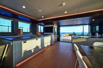 Ja juuri sitä tässä veneessä piisaa. Yli 240 neliömetrin kansipinta-alalla Silent 62 3-Deck Open on todellinen kompaktiluokan superjahti. Pääkannen peräosassa on melko avara tila, jonka tuolit, pöytä ja integroidut sohvat houkuttelevat leppoisaan oleiluun kavereiden ja perheen kesken. Valinnaisiin ominaisuuksiin kuuluu grilli, jääkaappi ja runsaasti säilytystilaa varusteille, jotka tekevät lompurjehduksesta siedettävämmän. Teakilla vuorattu uimataso on nostettavaa sorttia ja sillä voi varastoida jopa 500 kiloa painavan tenderin tai muun valinnaisen vesilelun.