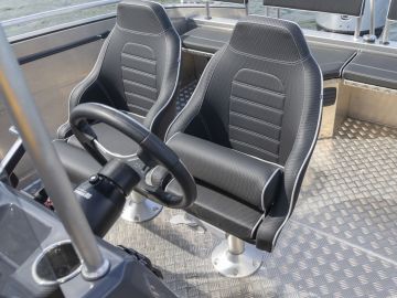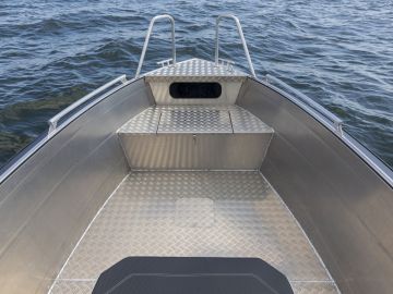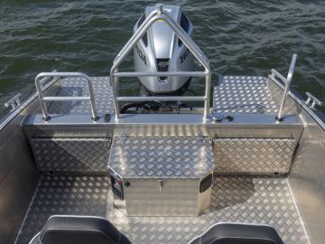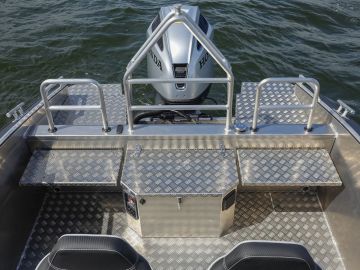 Korkeiden laitojen suojassa on turvallista matkustaa ja toimia isommassakin aallokossa. Kansiturkki on jalan kestävää kyynelpeltiä ja 30 millimetrin kaiteet ympäri venettä parantavat sekä turvallisuutta että mahdollistavat esimerkiksi vapojen ja takiloiden kiinnityksen. Vapaata turkkialaa on runsaasti sekä kuorman kuljettamiseen että veneessä toimimiseen.