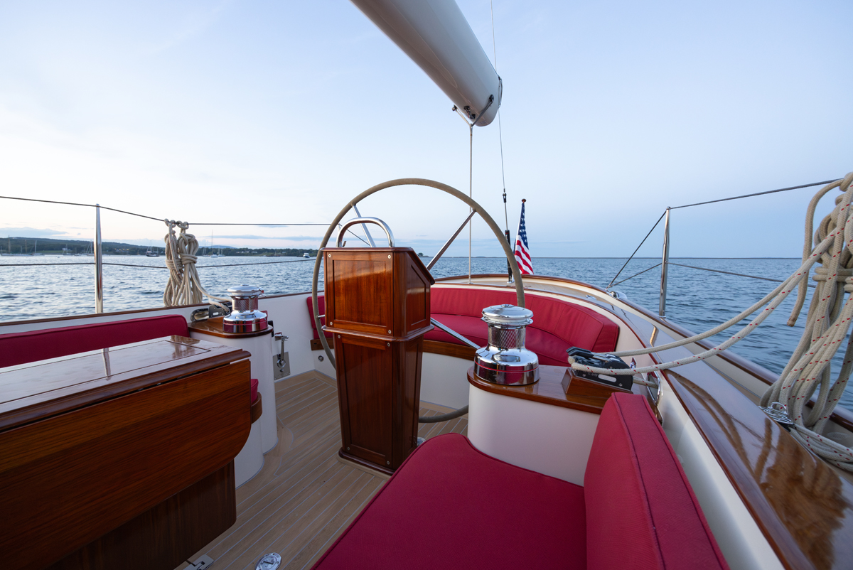 Se vapauttaa matkustamon nykytavan mukaisesti puhtaaksi köysistä ja vieraiden viihtyisään oleskeluun. Keskellä on klaffipöytä, hienosti lakattuna tietenkin, ja viimasuojaa antava ajokuomu peittää sisäänkäynnin sateelta.