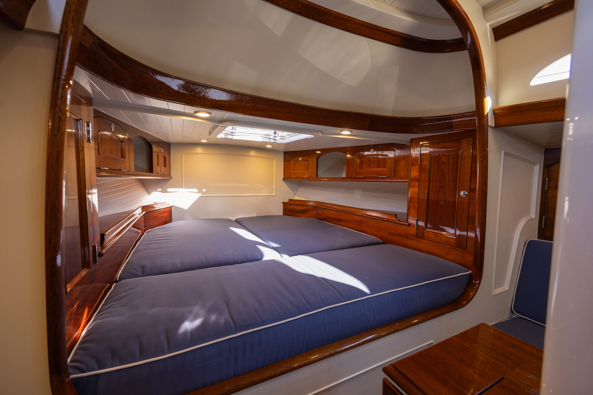 Koska runko on solakka, perässä ei ole tilaa kajuutalle eikä avotilan alle ole sovitettu edes pistopunkkia. Ainoa nukkumispaikka on kahden hengen laveri keulassa. Kun kyseessä on käytännössä pariskunnan ja satunnaisen vieraan vene, ei kajuutan erottamiseen salongista ovella ole tarvetta, vaan yhtenäisen tilan antama avara tuntu on katsottu suuremmaksi arvoksi.