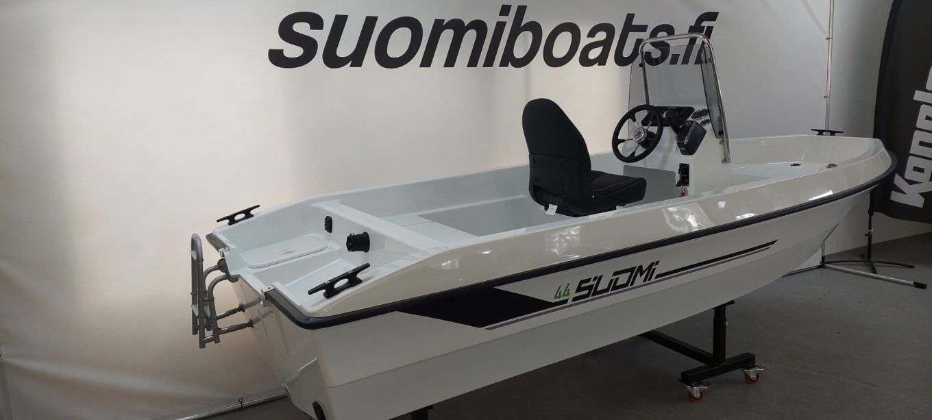 Suomi 44:n perusmallissa on kevytohjauspulpetti, joka on asennettu peräpenkin eteen styyrpuurin laitaan. Moottorina on 20-hevosvoimainen Tohatsu MFS20. Paketin hinnaksi ilmoitetaan 9 500 euroa.