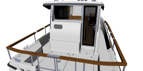 Ensimmäisenä esittelykuntoon valmistuu Vene 23 Båt -messuilla helmikuussa esiteltävä Aft Door -versio, yläohjaamoversiota saadaan odottaa mallivuoteen 2024. Pääkuvassa näkyy Black Line -optio, joka tarkoittaa mustiksi maalattuja ikkunaruutujen kehyksiä.