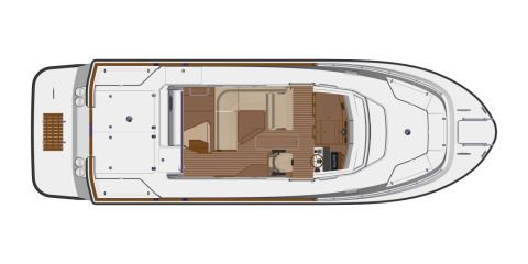 Runko ja erinomaiset ajo-ominaisuudet jäävät ennalleen, ja hyvä niin. Laaja moottorivalikoima sisältää myös yksimoottorivaihtoehtoja, mutta eiköhän jatkossakin valtaosa T32:n ostajista hanki veneensä kahdella koneella varustettuna, ja mieluummin sieltä valikoiman tehokkaammasta päästä. Olemassa olevilla vaihtoehdoilla tehokkaimmat optiot ovat Volvo Pentan D6:t, joita voi valita pareittain 340-, 380-, 400- tai 440-hevosvoimaisina.