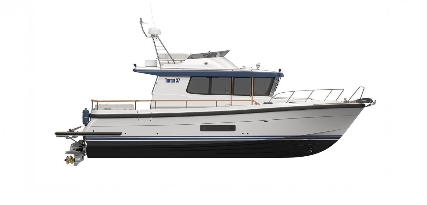 Ensi syksynä Uiva Flytande -venenäyttelyssä suurelle yleisölle ensiesiteltävä täysin uusi Targa 37 kuuluu mallivuoden 2027 odotetuimpiin kotimaisiin moottoriveneuutuuksiin. Se on olemukseltaan kuin vähän pienennetty painos huippusuosioon nousseesta Targa 41:stä.