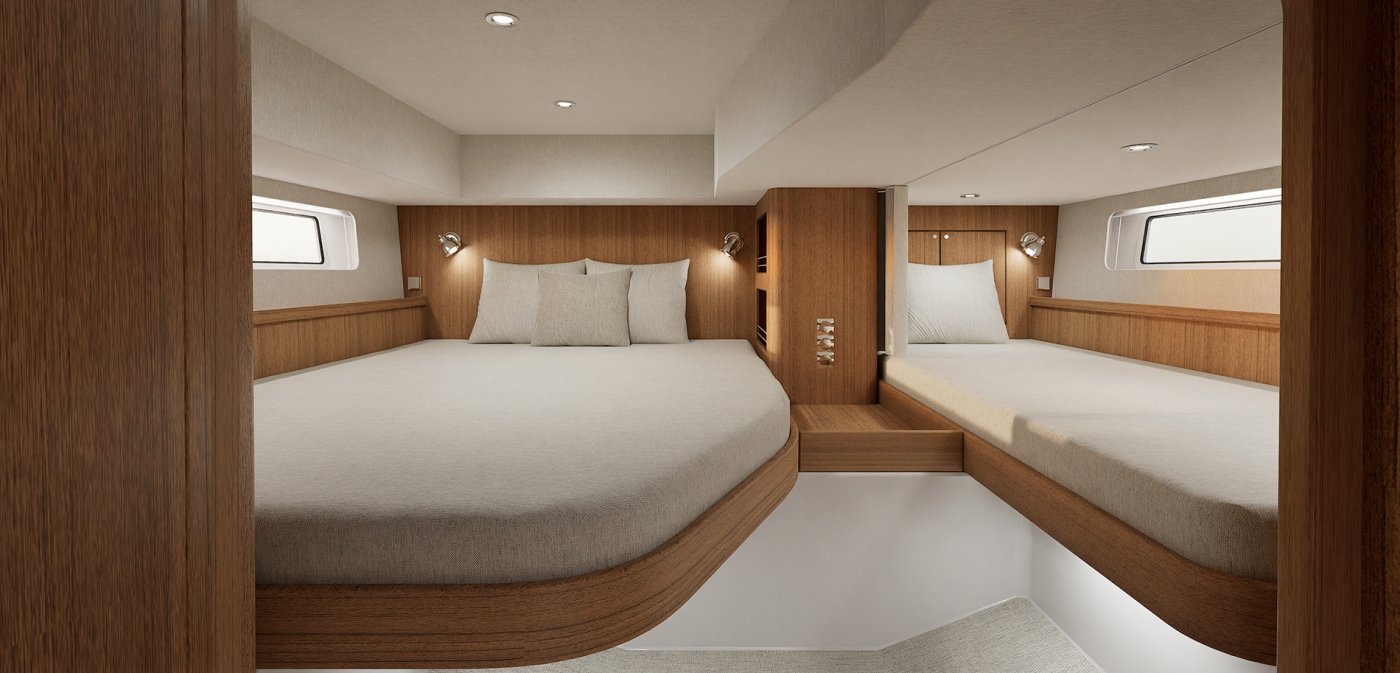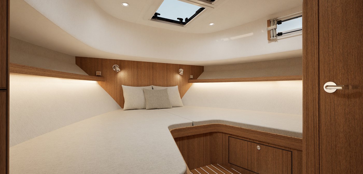 Uuden T37:n 3,75 metrin leveys tulee varmasti tuntumaan hyvällä tavalla sisätiloissa. Vaikka tilaratkaisu on pitkälti entisen kaltainen, voi makuukajuuttojen, kansisalongin ja toilettien odottaa tuntuvan kasvaneen volyymin myötä selvästi aiempaa avarammilta.