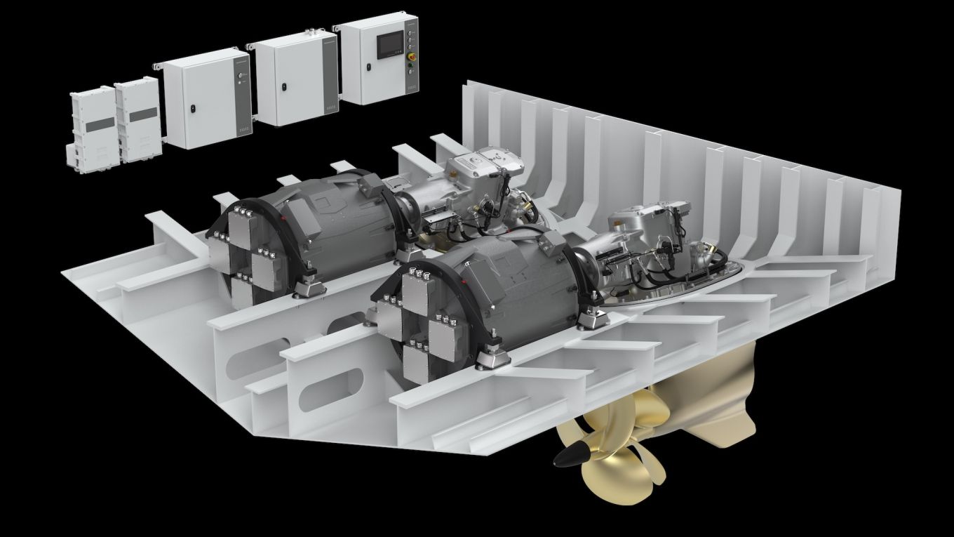 Sähkömoottorit ja IPS-vetolaitteet ovat vain osa voimalinjaa. Kuvan kokoonpanossa akkuja lataa kaksi matkanajatkana toimivaa tehokasta polttomoottorigeneraattoria.