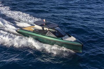 Wally huokuu täysin häpeilemättä luksusta, mutta tekee sen selkeän yksinkertaisin linjoin. Ensimmäisen veneen tumman vihreä metalliväri kruunaa kokonaisuuden.