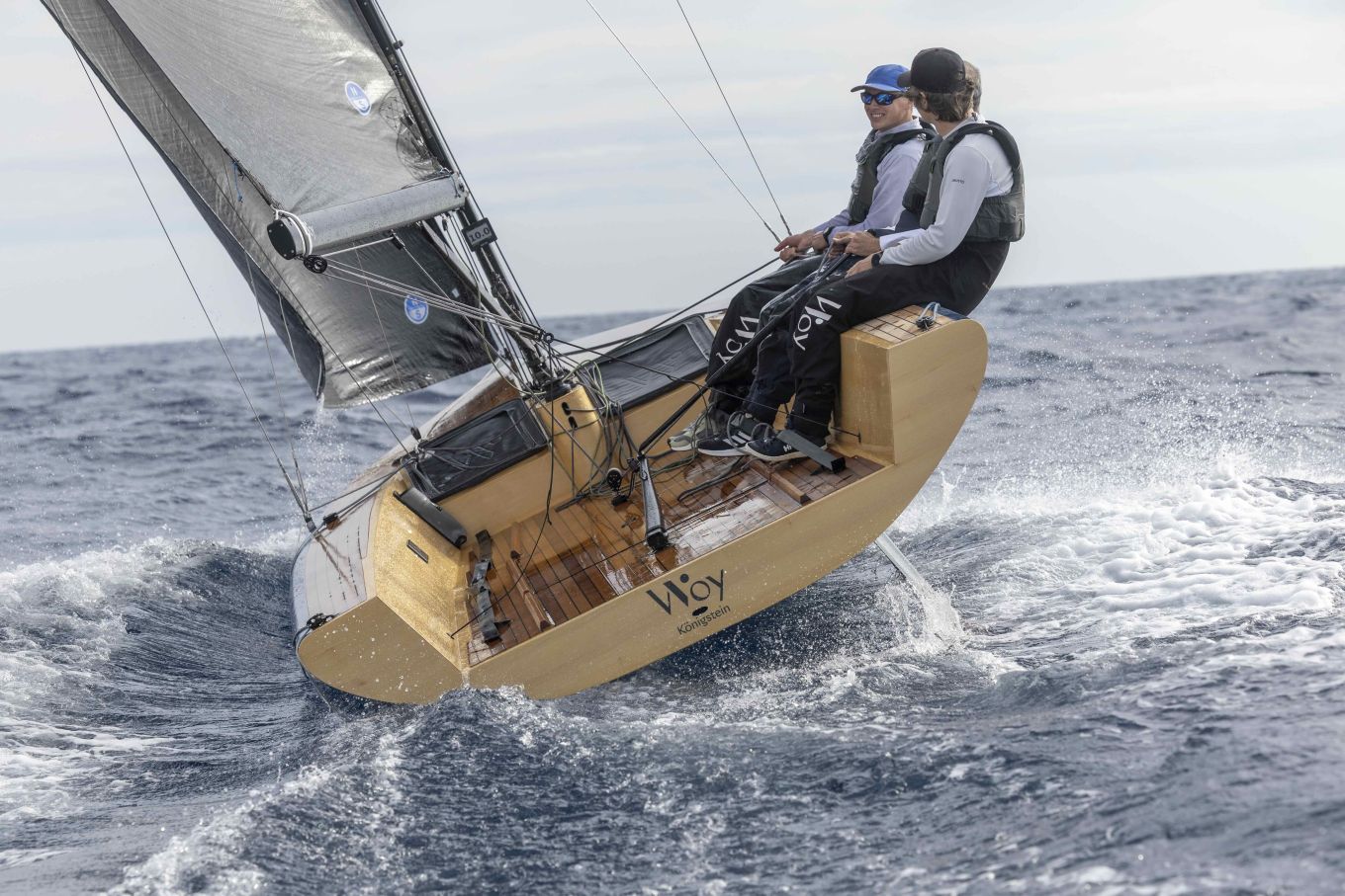 Woy luotiin nopeaksi päiväpurreksi, mutta niin helposti käsiteltäväksi, että sillä sujuu myös yksinpurjehdus. Purjevarustukseen kuuluvat isopurje, itsejalustava fokka ja keulapuomiin halssattava rullagenaakkeri. Reivejä ei ole lainkaan, ei myöskään peräharuksia. Hiilikuitumastoa tukevat vahvasti taakse viistotut saalingit ja trimmaus tapahtuu pelkästään skuuteilla, kikillä ja masto- sekä puomiliikkien säädöillä. Vinssejä on vain yksi, keskellä venettä mastonjalan vieressä. Levankia ei ole, isonjalukselle on ploki keskellä avotilaa ja talja puomin päästä turkille.