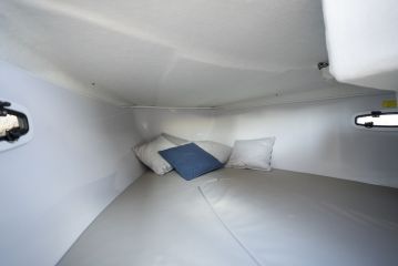 Kuuden metrin kokoluokka huomioiden 60 DC:n kajuutan luvataan oleva tilava. Koko kajuutan pituus on hyödynnetty vuoteena, jonka alla on säilytystilaa. Yöpymän mahtuu kaksi aikuista, minkä lisäksi kajuutta toimii päiväretkillä mainiosti myös esimerkiksi lapsien päiväunipaikkana tai tavaratilana.