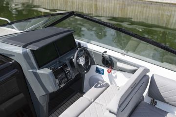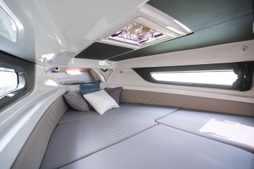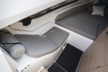 Uudenlainen ajattelu näkyy erityisesti keulakannen toteutuksessa. Pohjoismaiseen daycruiser-tyyliin hyvin ohjaamoa ja matkustamoa suojaava tuulilasi on täysleveä ja läpikuljettava, mutta aukeava ruutu on veneen keskilinjan sijaan paapuurin laidalla. Sen jatkeena keulakannella on syvennetty ja kaiteilla suojattu kulkuväylä. Ratkaisussa yhdistyvät turvallinen ja esteetön kulkuväylä keulaan ja tasainen keulakansi, joka voidaan varustaa mukavaa oleskelua varten aurinkopatjalla.