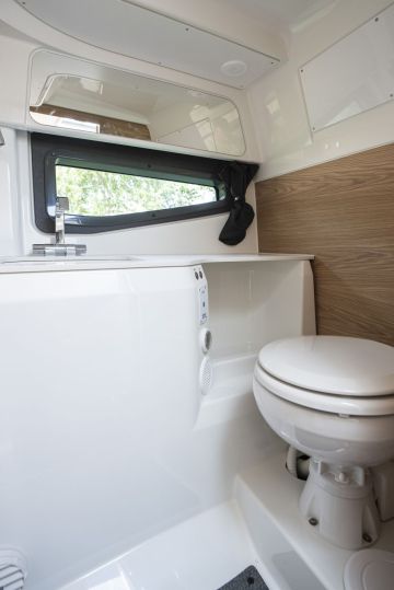Daycruiserien tapaan 80 DC:n tilankäytön keskipiste on kuitenkin kookas avotila, jossa mahtuu seurustelemaan mukavasti jopa kahdeksan henkeä. Monille Yamarinin DC-malleille tyypilliseen tapaan myös 80 DC:n ohjaamossa on paripenkki, joka selkänoja eteen taittamalla laajentaa ja muuttuu osaksi perän kulmasohvaa. Sohvan takaselkänoja taittuu puolestaan peräkannella alas vaakatasoon, jolloin aurinkotaso on vaivattomasti valmis käytettäväksi.