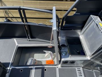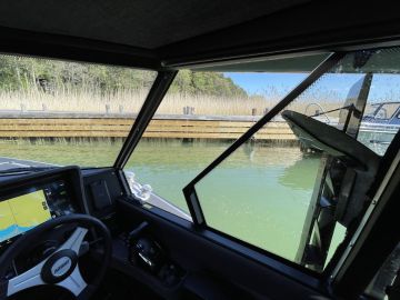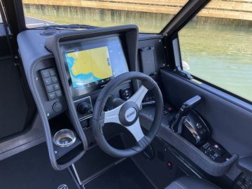 Kännykän lataustelakalla on sen sijaan paraatipaikka, jossa sitä voi käyttää navigoinnin apunakin. 12-tuumainen vakioplotteri on luonnollisesti sijoitettu keskeisesti kehystetty reunuksilla, jotka ehkäisevät heijastumia ja parantavat siten sekä näkyvyyttä että plotterin luettavuutta.