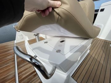 Kookasta uimatasoa kohti avautuva peräsohva nähtiin jo pari vuotta sitten esitellyssä SR41:ssä, mutta se on onnistuneesti skaalattu myös SR36:een. Ehdottomasti yksi veneen suosikkipaikkoja.