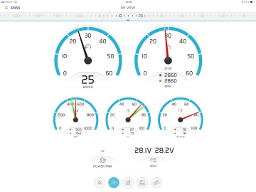 Mercury Marinen koodaama VesselView Mobile -appi saa Mercuryn ja Mercruiserin moottoreiden ajotietokoneiden Smartcraft-can-väylästä samat tiedot kuin veneen Smartcraft-mittarijärjestelmä.
