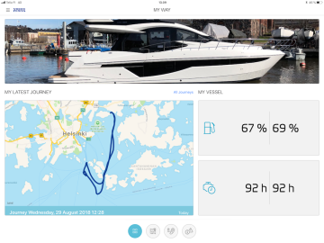 Karttasovelluksella näkee veneen aiempia ja nykyisiä kulkutietoja. Sillä voi myös etsiä kaupallisia palveluita ja tallentaa omia suosikkipaikkoja. Navigointikartaksi se ei sovellu.
