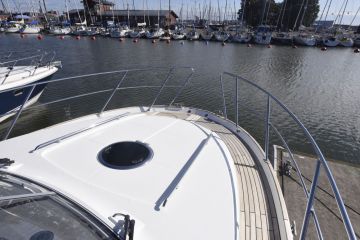 Satamamanöövereissä akselivetoinen 320 ACC tuntuu äkkiseltään kankealta, mutta tilanne muuttuu täysin, kun lisävarustelistalta ruksaa vakiovarusteisiin kuuluvan keulapotkurin pariksi perän ohjailupotkurin. Sen jälkeen Marex pyörii vaikka paikallaan ja on vaivaton veivata ahtaaseenkin väliin.