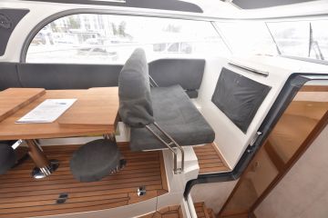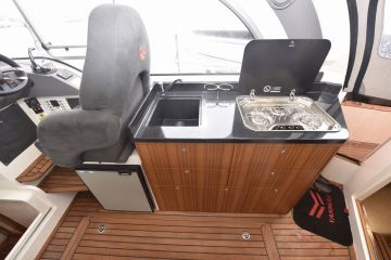 Ohjaamossa ei ole mitään, mikä matkantekoa haittaisi. Senkin puolesta siis nojatuomimaisen mukavassa penkissä voi ottaa rennon asennon, ja nauttia matkasta, joka taittuu oikeastaan koko käytettävissä olevalla 3–24 solmun nopeusalueella mukavasti. Vain noin 10 solmun nopeudessa tuntuu lievä liukukynnys.