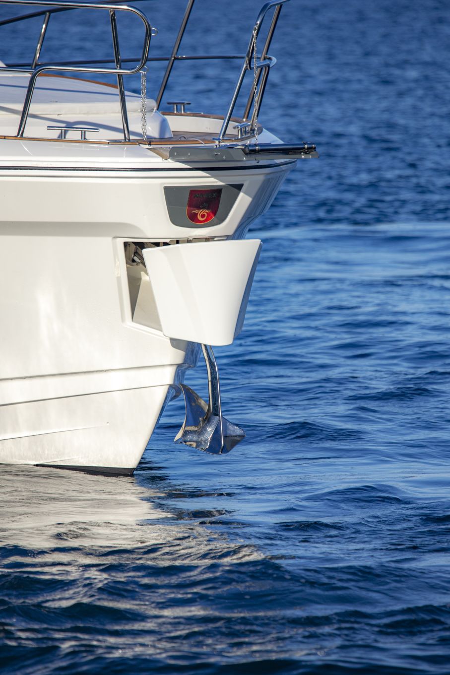 Marex on aika tarkka huolitellusta keulan muodostaan, eikä siihen oikein sovi törröttävä keula-ankkuri sen enempää kuin ankannokkakaan. Siksi jälkimmäinenkin on ratkaisu ankkurilaatikon kannen alta esiin taitettavalla keulatasolla ja siihen liitetyillä portailla.