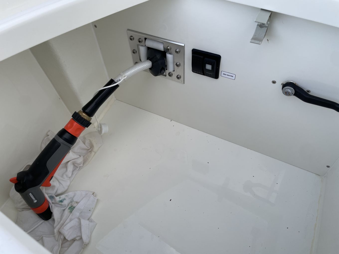Valtava pentteri tahtoo varastaa Gourmet Cruiserissa kaiken huomion, joten käsitellään se heti pois alta. Se levittyy veneen molemmille laidoille ja on sijoitettu keskelle veneen pääkantta perän oleskelutilan ja komentosillan väliin. Yhtä suurta ja ominaisuuksiltaan sekä varustukseltaan vastaavaa pentteriä on ihan turha etsiä mistään muusta alle 60-jalkaisesta venemallista.