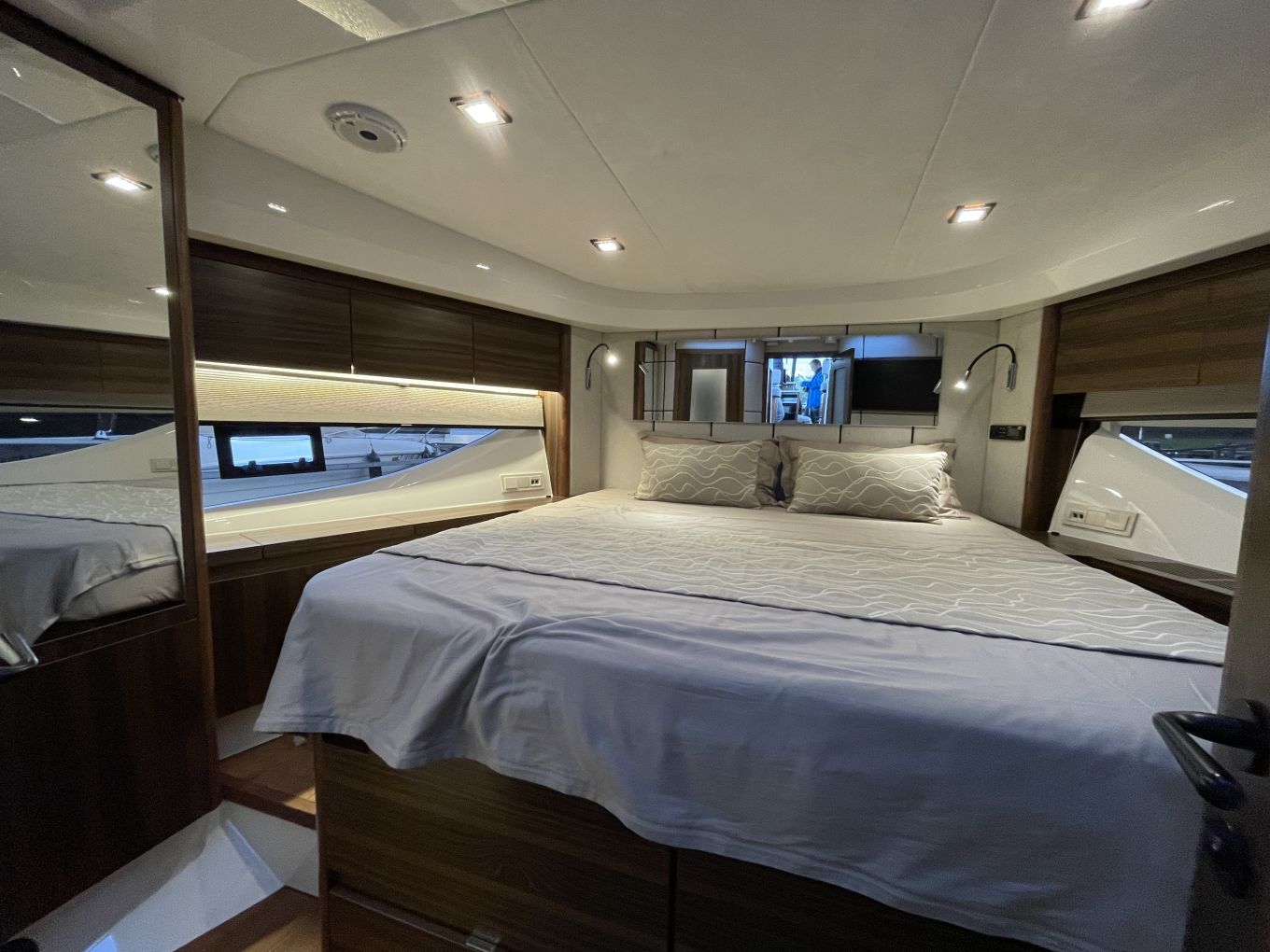 Testiveneen konehuoneessa pauhavat Volvo Pentan 5,5-litraiset D6-dieselit 480 hevosvoimaan viritettyinä. Niiden voima siirtyy veteen IPS-vetolaitteiden kautta. Samat moottorit saa myös V-vaihteella varustetulla akselivedolla tai 440-hevosvoimaisina DPI-perävetolaitteisiin yhdistettynä.