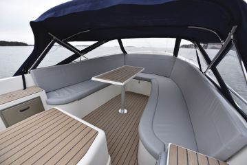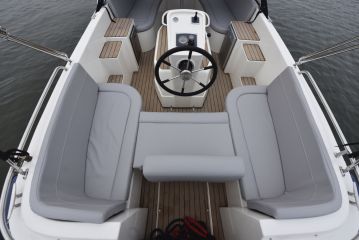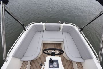 Istumapaikoissa on mistä valita, sillä sekä perässä että keulassa on u-sohvat. Keulassa oleva on selvästi suurempi, ja myös ajon aikana vapaasti käytettävissä. Takasohvan keskimmäisen kappaleen voi liu’uttaa ruorin eteen, jolloin se muodostaa kuskin istuimen, mutta heikentää ympäröivän sohvan käytettävyyttä.
