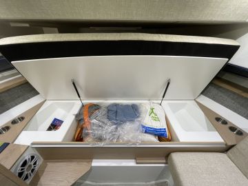Säilytystiloja taka-avotilassa on runsaasti, sillä suuren pääruuman lisäksi käytössä on kaksi pienempää turkin alla olevaa tavaratilaa, sohvan (tai sohvien) säilytystilat sekä helppokäyttöiset laitojen peräkulmissa olevat lokerot, jotka soveltuvat etenkin kiinnitysköysien ja lepuuttimien säilömiseen.