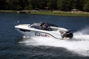 Raptorin tehoalue on 250–350 hevosvoimaa. Silverit myydään yleensä vain Hondan perämoottoreilla varustettuina, mutta koska Hondan tarjonta loppuu siihen mistä Raptorin tehoalue alkaa, saa Raptorin myös Suzukin koneilla. Testiveneessä oli tehokkain 350-hevosvoimainen Suzuki, jonka erikoisuus on kaksoispotkuri.