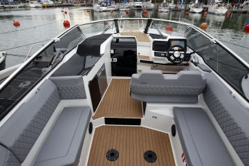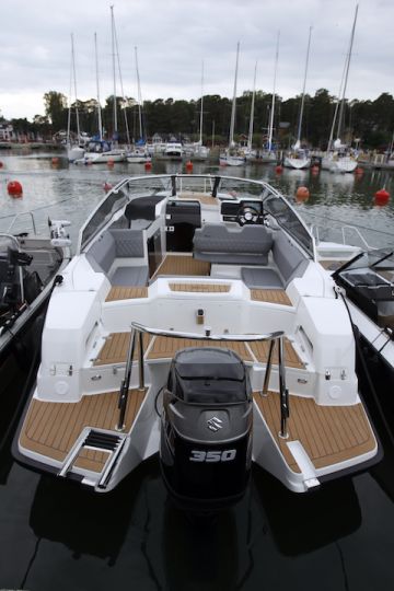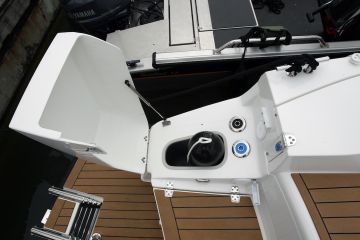 Matkailumukavuuksien lisäksi vakiovarustelu on runsasta myös ajamiseen liittyvien tilpehöörien kohdalla. Kohokohtiin kuuluvat esimerkiksi Raymarinen 9-tuumainen Axiom-karttaplotteri, keulapotkuri sekä Zipwaken automaattitrimmit.