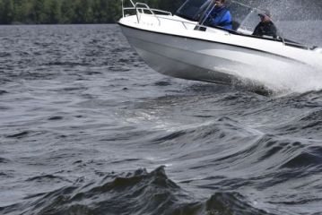Uppoumanopeuksilla 175 BR kulkee kohtuullisen hyvin suoraan, tosin tuulenpuuskat ja laitakuorman korkealaitainen vene noteeraa selvästi.