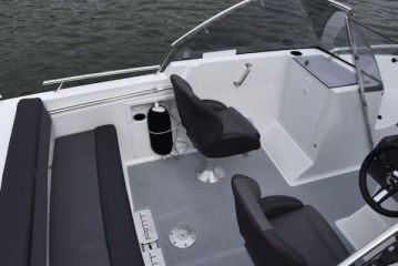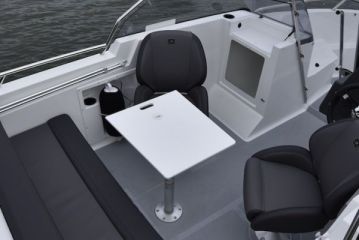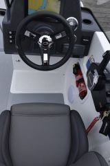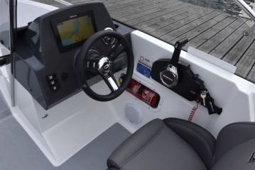 Vakiovarustusta voi kehua, sillä vakiopakettiin kuuluu "valmiina vesille" -hengessä Raymarinen gps-plotterilla, kaikuanturilla ja moottorin datayhteydellä varustettu seitsemäntuumainen monitoiminäyttö sekä kaikki kiinnittymisvarusteet.