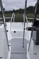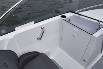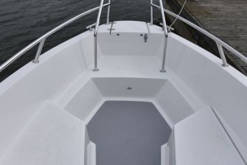 Keulassa on panostettu etenkin selkeisiin ja helppoihin kulkuyhteyksiin. Askeltaminen veneeseen ja veneestä onkin helppoa sekä sivuilta että suoraan keulasta. Keulakaiteet jatkuvat poikkeuksellisen alas, tarjoten hyvän kädensijan myös lapsille.