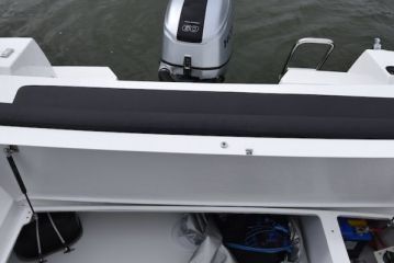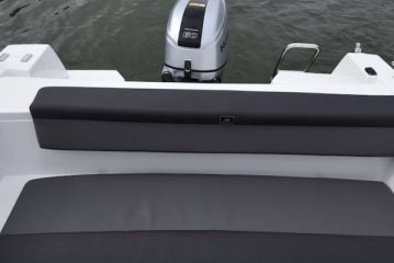 Takapenkillä on avaraa ja tilaa tarvittaessa kolmellekin. Etenkin jalkatilat ovat vaikuttavat, mikä tarkoittaa sitä että ohjaamon erillisistuimien ja tyhjän peräpenkin välissä mahtuu vaivatta myös seisomaan ja liikkumaan – vaikkapa kalastaessa.