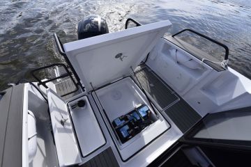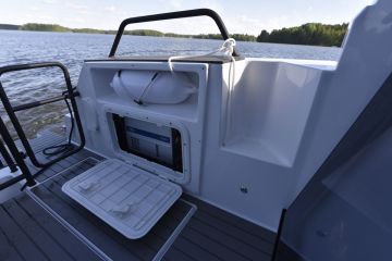 Taka-avotila on sen verran kookas, että se kestää jossain määrin vertailun jopa etuhytti- eli pilothouse-veneiden kanssa, mikä keskihyttiveneelle on tietysti loistosuoritus.