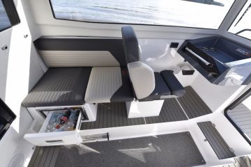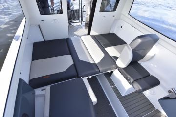 Tilojen osalta isoimmat uutiset ovat pääavotilan vaihtuminen keulasta perään ja kajuutan kasvaminen. Sisältä löytyy nyt tähän kokoluokkaan poikkeuksellisesti kuusi istumapaikkaa.