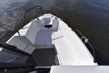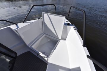 Etuavotilan osalta oleellisinta on sujuva läpikuljettavuus, mikä toteutuu kaikkiin suuntiin hyvin. Varsinaista turkkitilaa ei ole paljoa, mutta lähes penkinkaltaisesti korotettu keula ja styyrpuurin sivu toimivat kulkemisen ohella myös kalastustasoina.