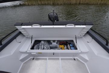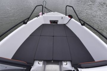 Täytelevy on vakiovaruste, patjat maksavat 460 euroa. Niiden myötä Falconin keulaosasto on useimpia kilpailijoita monikäyttöisempi. Se toimii tavarankuljetustilana, kalastustasona, oleskelu- ja matkustuspaikkana tai aurinkotasona.