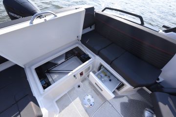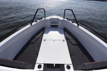Vakiovarustelu ei ole erityisen runsas, mutta pitää sisällään tärkeimmät. Linja vaikuttaa ihan perustellulta, ja jättää sijaa veneen mieleiseksi ja käyttötarkoitusta vastaavaksi muokkaamiselle lisävarusteiden avulla.