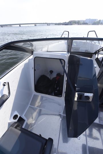 Seitsemän metristen alumiinibowriderien luokassa BR 8:n uniikein ominaisuus on kuitenkin retkimukavuuksiin panostaminen. Jääkaappi löytyy monen kilpailijankin lisävarustelistalta muttei pesuallasta, hanaa saati keitintä.