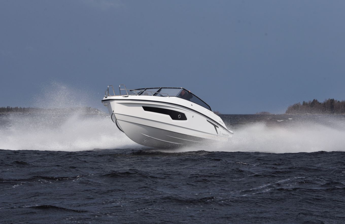 T9:ssä perän V-kulma on "vain" 17,5 astetta (esimerkiksi T8:ssa se on 21 astetta), mutta muuttujat kohtaavat erittäin onnistuneesti. Ensimmäiselle koeajopäivälle Finnmasterin kotivesille Kokkolaan saatiin kunnon puhuri, jossa aallonkorkeus oli jo Kokkolan sataman edustalla metrin–puolentoista luokkaa. Noin 200 kiloa ylipainoinen protovene oli kelissä kuin kotonaan.