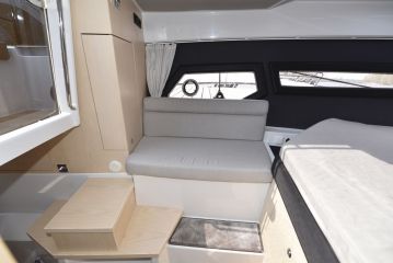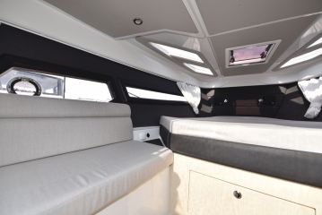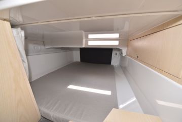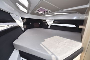 Loput kajuutasta on valjastettu makuutiloille. Keulassa on styyrpuurin sivulle levittyvä, aikuisten mitoissa oleva parivuode. Avotilan alle työntyvä keskivuode on sen sijaan pienehkö: sen pituus on vain 180 ja leveys 120 senttiä. Ilmatilaa vuoteen yläpuolella on 75 senttiä, mikä on daycruiserien luokassa huomattavan runsaasti.
