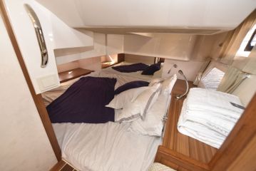 Makuukajuutat ovat tilavuudeltaan ja vuodemitoiltaan kiitettäviä ja tasoltaan lähellä toisiaan, mutta monipuolisemmat säilytystilat ja helpompi käynti vuoteelle puhuvat keulakajuutan puolesta. Ei säilytystiloista ole varsinaisesti pulaa keskikajuutassakaan, mutta kulku poikittaisen parivuoteen taaemmalle makuupaikalle tai sieltä pois tapahtuu konttaamalla, mikä voi olla haastavaa, varsinkin jos se tapahtuu vuoteen jakavan vieruskaverin yli.