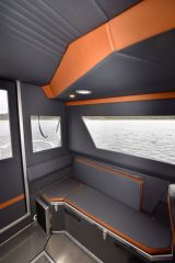 Sisäverhoilu on täysalumiinisten keskihyttiveneiden luokassa etenkin seinä- ja kattoverhoilun osalta ennennäkemättömän kaiken kattava.