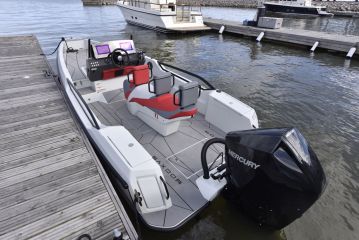 Moottoripartnerina on Mercury, jonka valikoimista "siviili-Sportiin" voi valita 100-, 115 tai 150-hevosvoimaisen koneen. Pro Sportin konevalikoima alkaa 150:stä ja yltää 175 hevosvoimaan. Koeajoyksilönä on tehokkaimmalla moottorilla ja muutamilla lisävarusteilla maustettu Pro Sport.