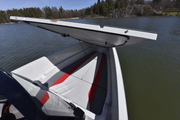 Avoimen peräpeilin ansiosta uimatasojen kautta veneeseen kulkeminen ei voisi olla helpompaa. Myös vesiurheiluharrasteisiin avoperä on omiaan.