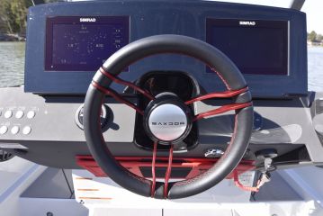 Karttaplotterin sisältävä monitoiminäyttö alkaa olla vakiona jo suomalaisten valtamerkkien pienemmän pään malleissakin, mutta Saxdoriin plotterin valitaan vasta lisävarustelistalta. Toisaalta niitä saa leveään kojelautaan kaksikin, mikä kuuden metrin kokoluokassa on vielä harvinaista.